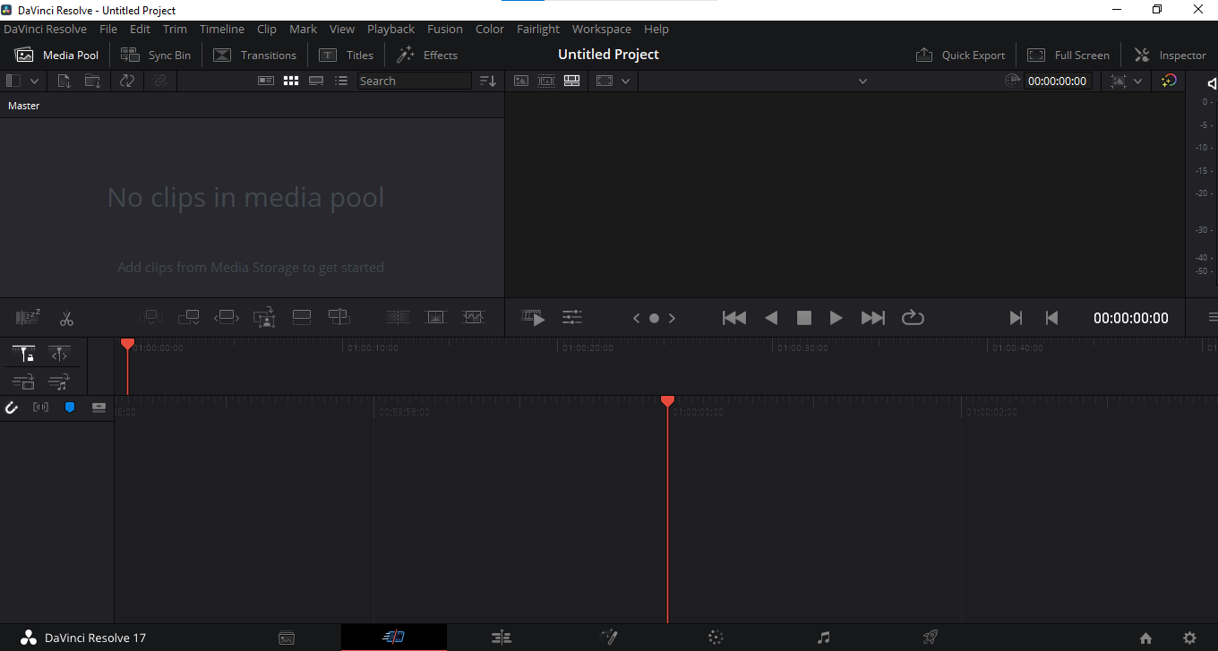Just like the others, you can pull your different media clips in, and there you can pull them down onto the timeline and you could start organizing what your video looks like right over here. You have a clip viewer and then also have my project viewer over there. You could adjust all sorts of different settings related to the video, the audio, and the different effects or transitions that you decided to insert. One of the nice things about Davinci Resolve is you have all of these other applications that are all part of Davinci Resolve. There you could load a view of all of my different media files. Here you have a dedicated cutting view which makes it even easier and quicker to cut your different video clips.